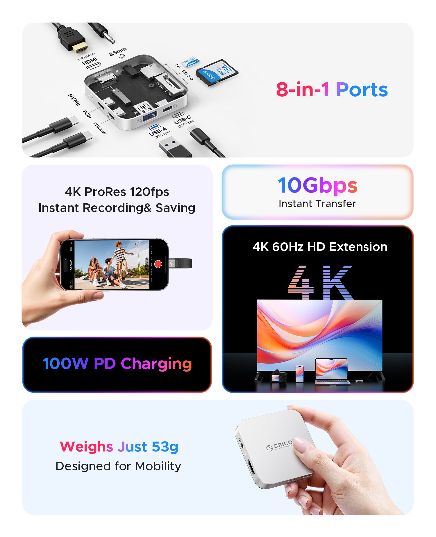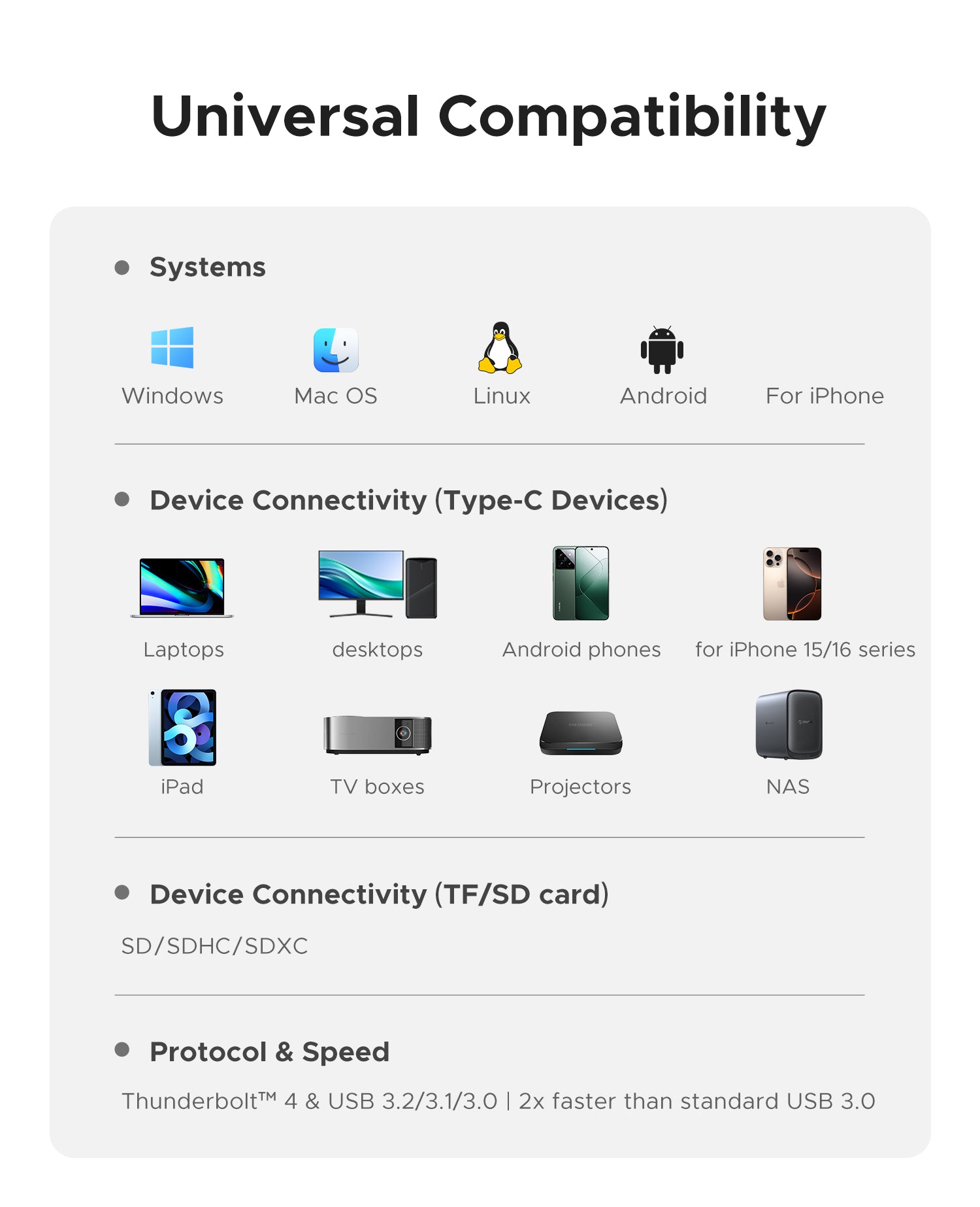 M.2 NVMe 2230 + 10Gbps USB-A + 10Gbps USB-C + 4K@60Hz HDMI + 3.5mm Audio + Dual SD/TF Card Reader