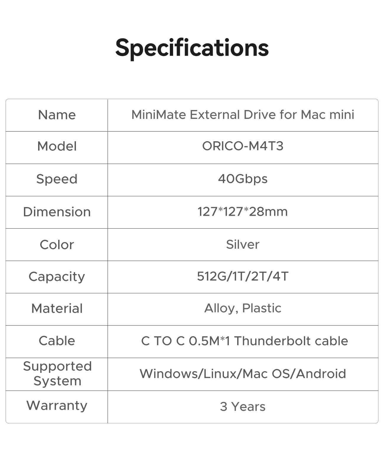 ORICO MiniLink/Minimate 40Gps External SSD For M4 Mac Mini