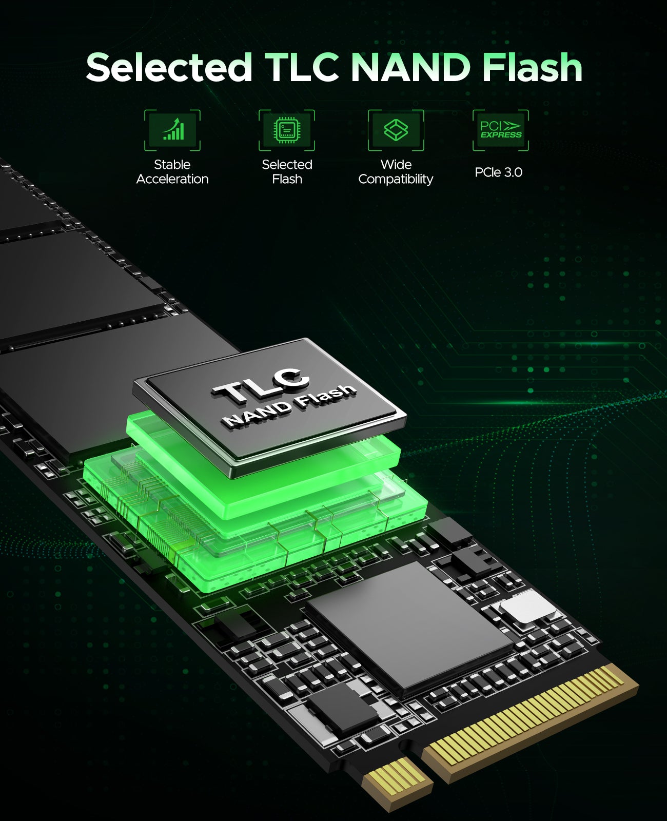 - Selected TLC NAND Flash: Built with advanced TLC NAND flash and latest controller, the M.2 SSD has been rigorously tested by a variety of high-precision professional instruments, which greatly proves the stability and safety